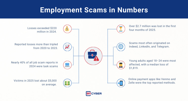 👉 Bottom line: Employment scams target both your wallet and your identity, making them one of the most personally damaging forms of fraud today.