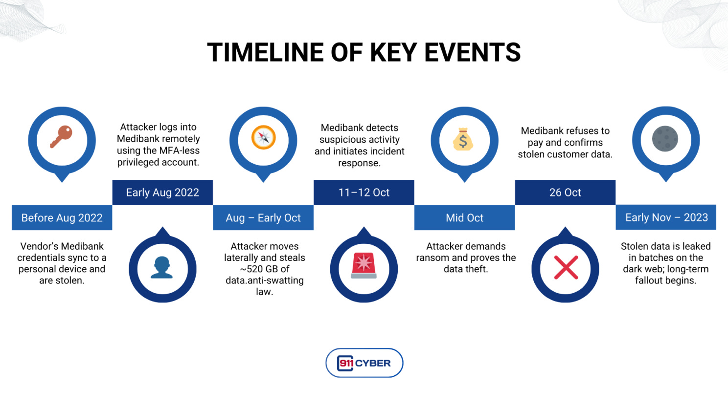 Using the stolen credentials, the attacker remotely accessed Medibank’s network from early August 2022. The account had privileged access but was not protected with multi factor authentication. The regulator now alleges that this lack of MFA on a high privilege remote account was a key failure.