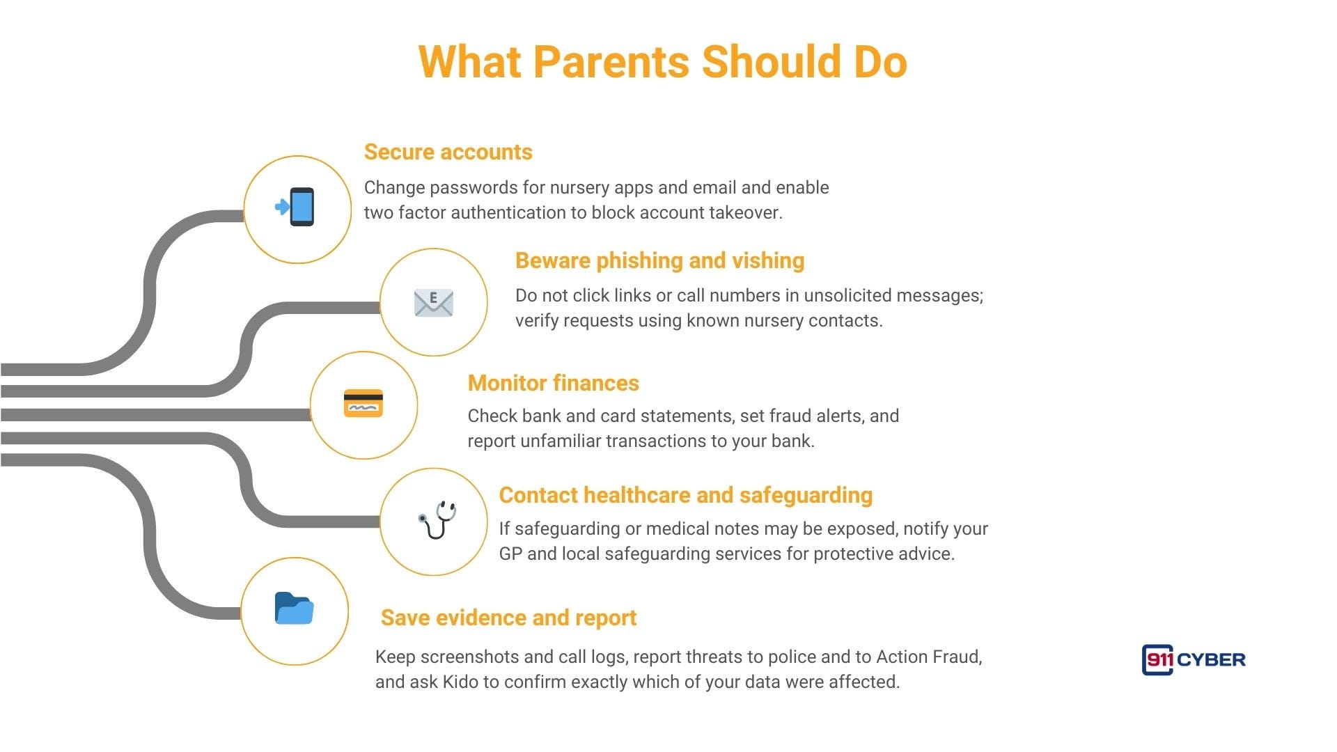 Regulators and police are investigating. Affected families should prioritise account security, remain vigilant for scams and insist on clear updates from Kido and the authorities while legal and forensic processes continue.