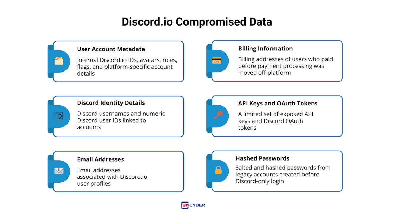 The stolen Discord.io database was extensive and detailed, combining public identifiers with sensitive account metadata.