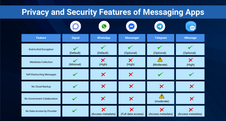 Now, let’s compare Signal to the usual suspects: WhatsApp, Messenger, iMessage, and Telegram. Sure, they all offer messaging features, but how do they stack up in terms of security and privacy?