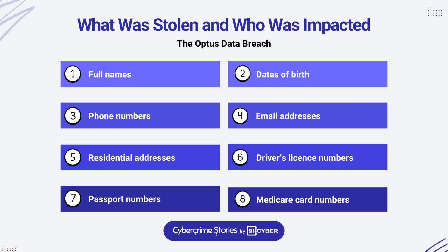 This group included approximately 150,000 passport numbers and roughly 50,000 Medicare card numbers. Hundreds of thousands of current licence numbers were also compromised. Many victims were former customers who did not know their data was still on file due to retention rules.
