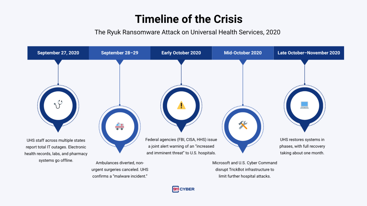 2024–2025: UHS has reported no further ransomware incidents and has strengthened its defenses. Industry-wide, hospitals adopted Zero Trust, offline backups, and mandatory downtime drills.